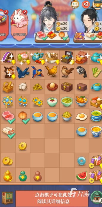 在《梦幻消除战》中,玩家需要通过交换相邻的物品来完成三消操作,例如玉佩、竹简等古风物件。每当达成三个或以上相同元素相连时,即可触发消除效果。不同类型的道具在消除后会带来特殊反馈,比如面点类物品被消除时,可能恢复一定体力值,或是获得茶楼店铺中的新配方线索。